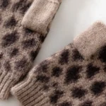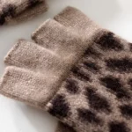 100% Cashmere Knitted Fingerless Warm Gloves – Leopard Print