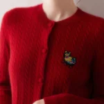 100% Pure Cashmere Embroidered Knitted Cardigan – Retro Outerwear