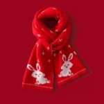 100% Pure Cashmere Red Scarf – Christmas Sheep Warm Scarf
