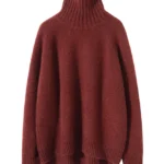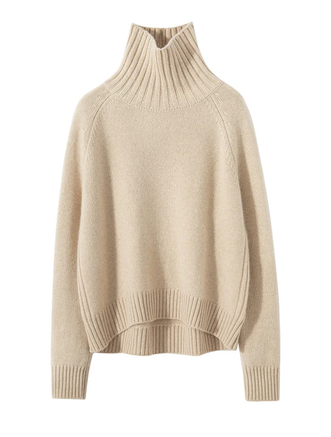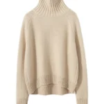 High-Neck Minimalist Women’s Pure Cashmere Thickened Loose Knit Long-Sleeve Top
