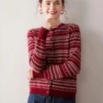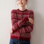 Retro Fashion 100% Pure Cashmere Jacquard Knitted Cardigan