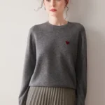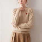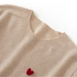 Women’s 100% Pure Cashmere Crewneck Sweater – Love Heart Embroidery