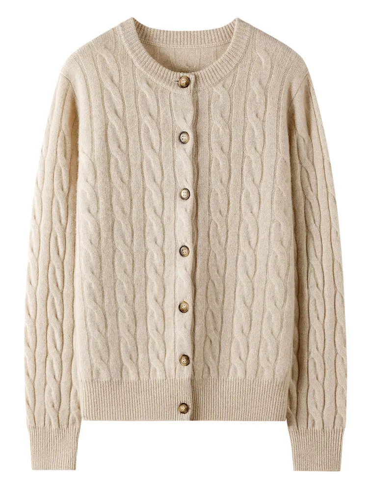 Women’s Crew Neck Knitted Sweater Coat for Autumn and Winter – 100% Pure Cashmere
