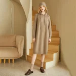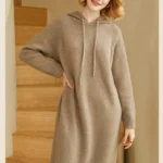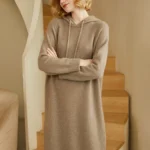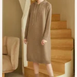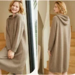 Women’s Long Hooded Pure Cashmere Dress – Braun