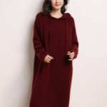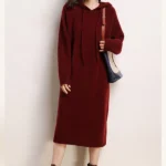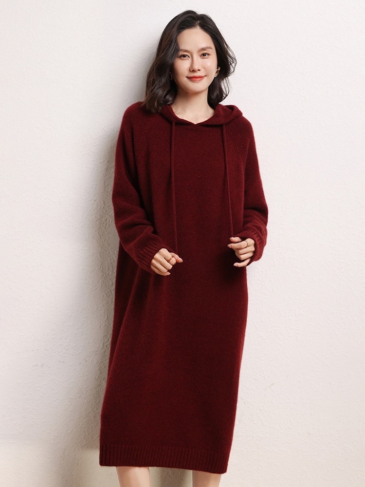 Women’s Long Hooded Pure Cashmere Dress – Red