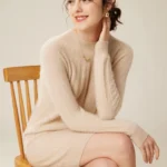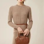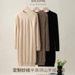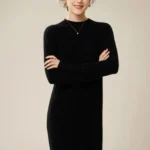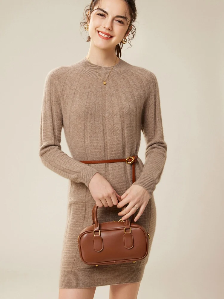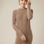 Women’s Pure Cashmere Dress – Mock Neck Long-Sleeve Knitted Dress