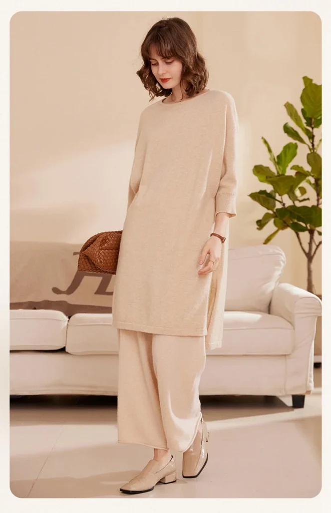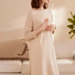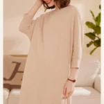Women’s Pure Cashmere Thin Knit Midi Dress – Beige