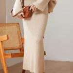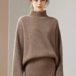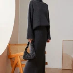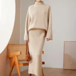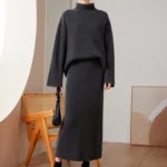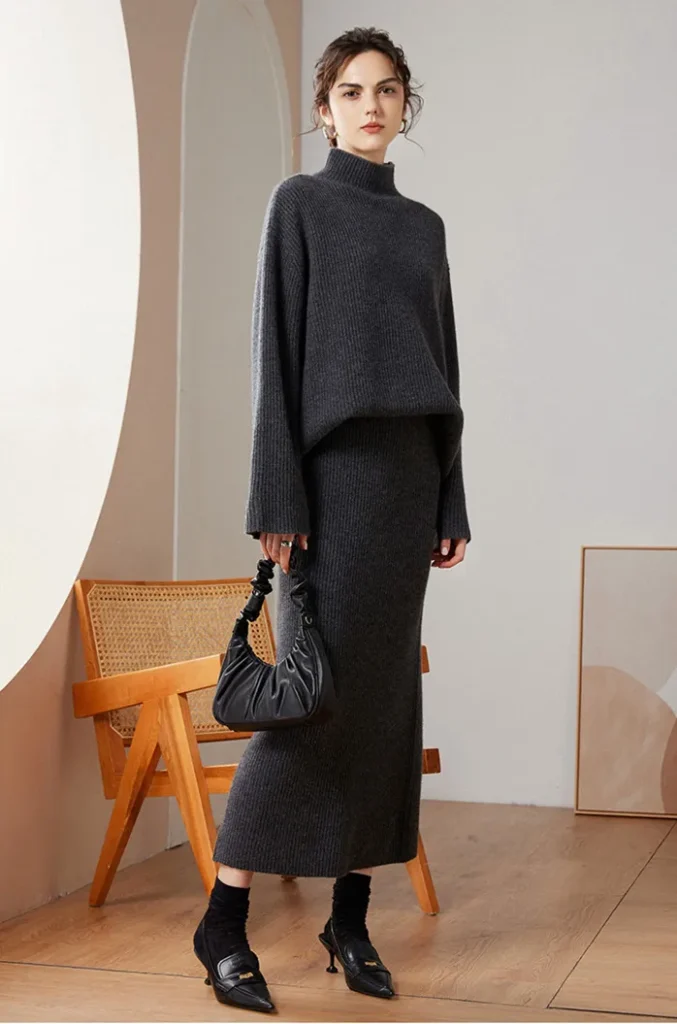 Women’s Turtleneck Pure Cashmere Knitted Sweater and Midi Skirt Set
